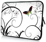 This brilliant butterfly escaping floral garden design laptop sleeve features a durable, weather-resistant Neoprene material with dual zippers that protects any laptop notebook up to 10 inch widescreen. This laptop case features Two-way zipper on the top pouch case offers easy to slip on, slip off. Its neoprene construction provides protective cushioning that feels great in your hand. Neoprene is water resistant and will protect your investment from leaks or spills as well. The slim notebook pouch case allows the sleeve to slip into your briefcase, backpack or messenger bag. With this cosmopolitan butterfly design printed on both sides of this white color notebook sleeve, let you make a fashion statement in the crowd. * Due to monitor variations colors may appear slightly different.Also compatible with following models: